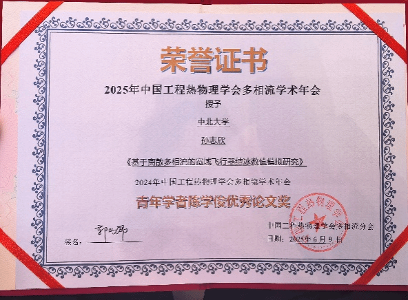 光热技术团队孙志欣硕士的学术论文《基于离散多相流的宽域飞行器结冰数值模拟研究》,凭借扎实的理论基础、创新的研究方法及重要的应用价值,在众多参评成果中脱颖而出,荣获2025年中国工程热物理学会多相流学术年会“青年学者陈学俊优秀论文奖”。这一荣誉不仅是对孙志欣硕士个人学术能力的高度认可,更是人妻av