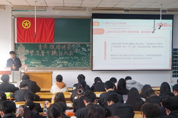 领导与相关教师围绕思想引领与能力建设,为参训学员带来系统而深入的专题辅导。胡向明书记以《为未来导航,与时代共振——学习二十届四中全会精神》为题,引导学员深刻把握时代脉搏,明确学生骨干在新时代背景下的责任与担当。任雁老师主讲的《明误区、悟方法、强担当——学生骨干工作的误区反思与能力提升》,结合实际案例,系统梳理了工作中常见问题,并提出了切实可行的能力提升路径。周娟美老师的《学生干部的领导力赋能》专题讲座,从理论到实践全面解析领导力内涵,为学生骨干有效带动团队、激发组织活力提供了专业指导。毋登辉老师在《新时代学生干部队伍建设》报告中,进一步强调了理想信念塑造、角色定位协调、实际问题解决与组织沟通协作的重要性,为学员未来工作指明了方向。