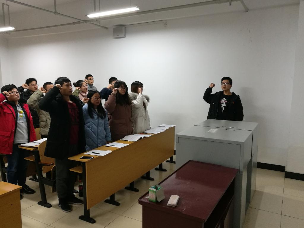 首先,由9名重点发展对象依次从思想、工作、生活、学习四个方面介绍自己的近期情况,再由其培养人、党小组组长和同班党员对发言的重点发展对象进行评价。经支部有表决权的4名正式党员投票表决,一致同意王耀荣等11名同学如期转为预备党员;接着,由2名预备期满的预备党员对自己在一年预备期内的表现进行介绍,再由其介绍人对其进行了客观评价。经支部有表决权的4名正式党员投票表决,一致同意唐诗泽等2名同学如其转为正式党员。最后,由支部宣传委员李思佳同志带领支部所有党员同志在党旗下庄严宣誓。宣誓完毕后,王茜同志对此次大会进行了总结,并提出了发展过程中出现的一些问题,如:有部分发展对象与培养人联系不密切,部分转预同志的材料还有问题;同时,王茜同志对这次转为预备党员的同志们提出了新的要求,希望他们转预之后能继续严格要求自己,为党支部贡献自己的力量。