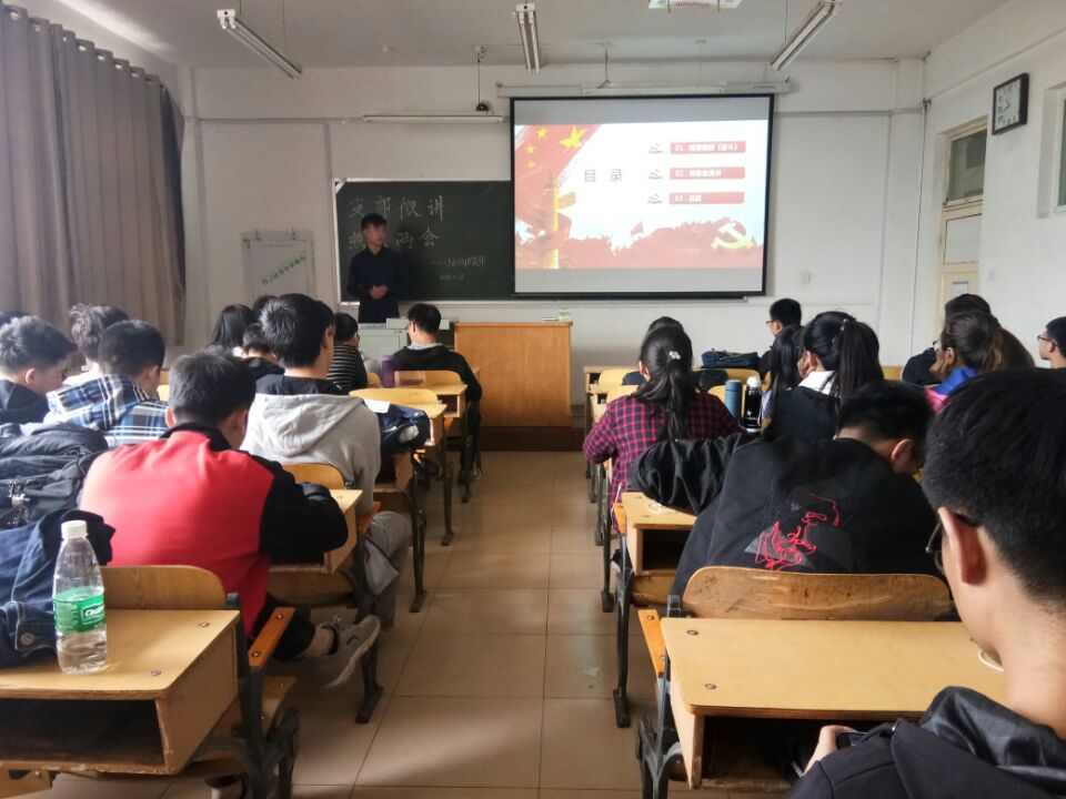 活动的第二项是“支部微讲,热议两会”演讲会,此次演讲会的目的在于让同学们能更好的了解两会。来自687的张子良同学、686的张展、女生寝室的赵鑫禹、152的李瑶、154的王宏伟、156的周润祥、150的安东阳,分别就“减免手机漫游费”、“电子商务的发展是否会冲击实体店“、“为实现中国梦做贡献”、“一带一路”、“少年强则国强”、“新能源汽车购置优惠政策”、“体育休闲旅游政策”等方面进行了演讲。他们或慢条斯理、娓娓道来或慷慨激昂、热情饱满。两会的精神也伴着他们的声音传进了大家的心房。这些与我们息息相关的话题,让我们对国家的形势政策与未来发展有了更清楚的认识。通过这次演讲会同学们可谓是获益匪浅。