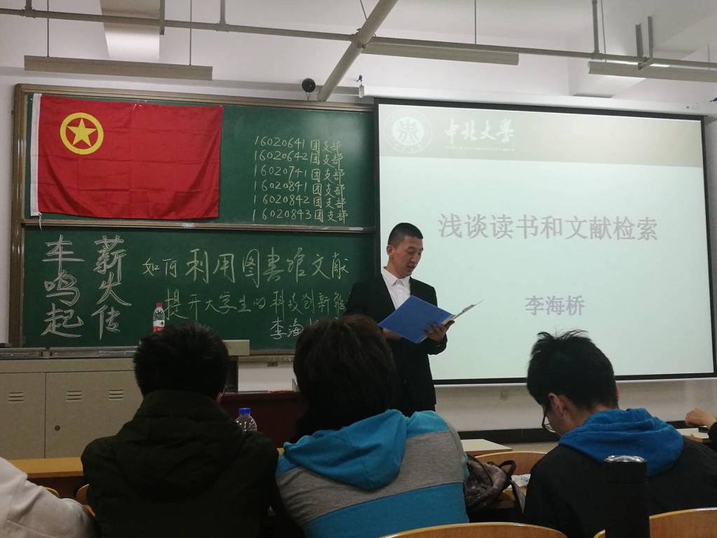 的学风建设大会上,赵书记明确表示希望提升本科生的探索能力,希望本科生从查读文献开始,了解科研过程,提高创新能力。赵书记指出,很多学生到了大四,连基本的文献查找和阅读都不会,毕业论文一头雾水。有感于此,我们几个团支部商量后,特意请到了一位在读博士师兄,由他来引领同学们入门。这个主讲人正是刘汉涛院长的高徒,李海桥师兄。经过几天的宣传、布置,我们将信息在支部中发布出去,邀请同学们来参加。这样的青志活动形式特殊,然授人以鱼不如授人以渔,我们就是希望将世上最珍贵的知识传递出去,即使只有万一,也是一份成功。