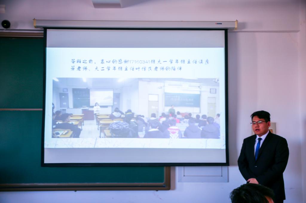 在答辩开始之前,首先,中北奖章获得班级15020741班班长程志豪上台对班级建设和学风建设进行了经验分享,给同学们树立了榜样,带来了启迪。随后,各班级代表依次按顺序上台进行答辩。答辩过程中,各班从学习情况、班级建设、党团建设、所获荣誉等方面配合制作精良的PPT进行了精彩纷呈的答辩,体现出各班独具特色的精神面貌和班级文化。在各班答辩依次完成后,本次大会圆满结束。