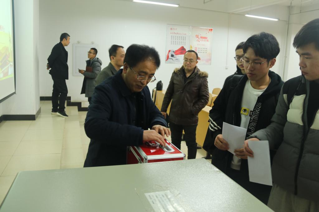 随后进行了主题教育工作测评,组织大家填写主题教育测评表,并郑重地将其放入红色的民主测评箱中。