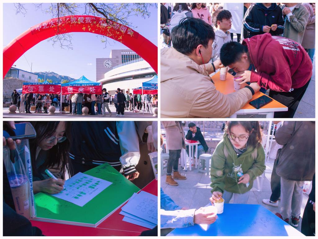 心理辅导站以“坚持”为主题设计了“纸杯传传乐”和“情绪源泉小瓶子”小游戏积极助力游园会的举办。纸杯传传乐小游戏广受好评,同学们踊跃参加;而情绪源泉小瓶子更是由于参加人数过多,游戏纸张供不应求。随着越来越多的同学参与,活动场面愈加热闹,时不时爆发的欢声笑语也让一些腼腆的同学逐渐放开自我,一起参与到活动中。伴随着一阵阵的掌声和欢呼,游园会活动也渐渐落下帷幕。