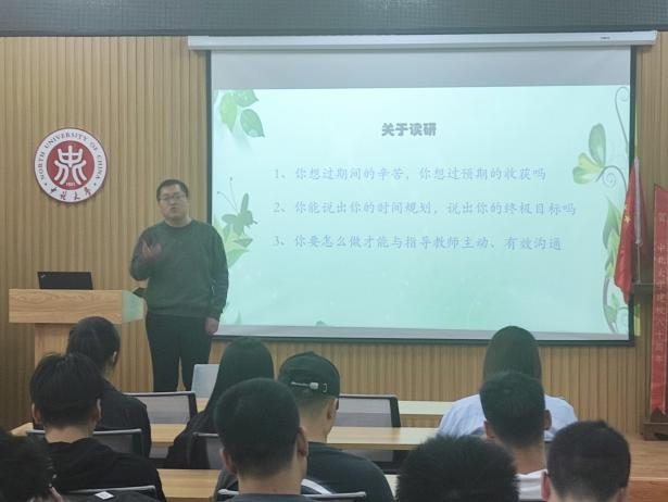李世民老师以同学们读研的目的为出发点,建议同学们应该设立近期目标和终极目标,给同学们清晰地展示了本科、硕士研究生和博士研究生的差异。之后李老师围绕如何坚持与指导教师主动、有效沟通这一主题进行了详细的阐述,并衷心希望每一位同学都可以做到高效、有效地与导师交流,在科研的道路上取得耀眼的成绩。